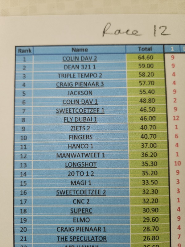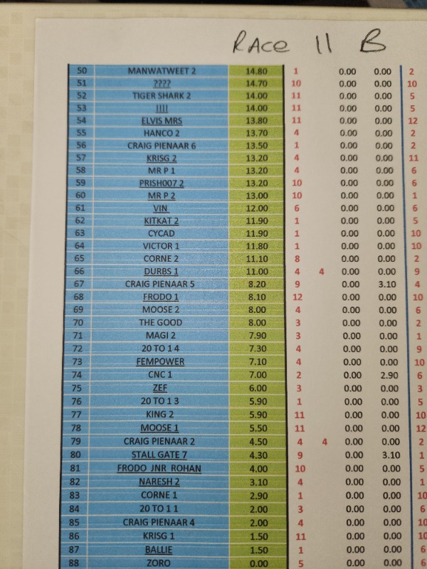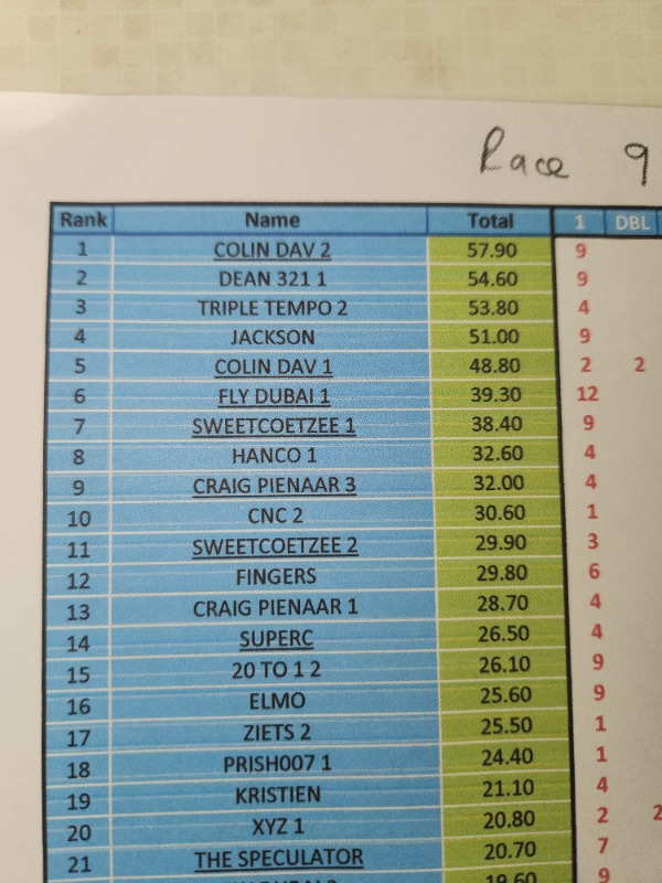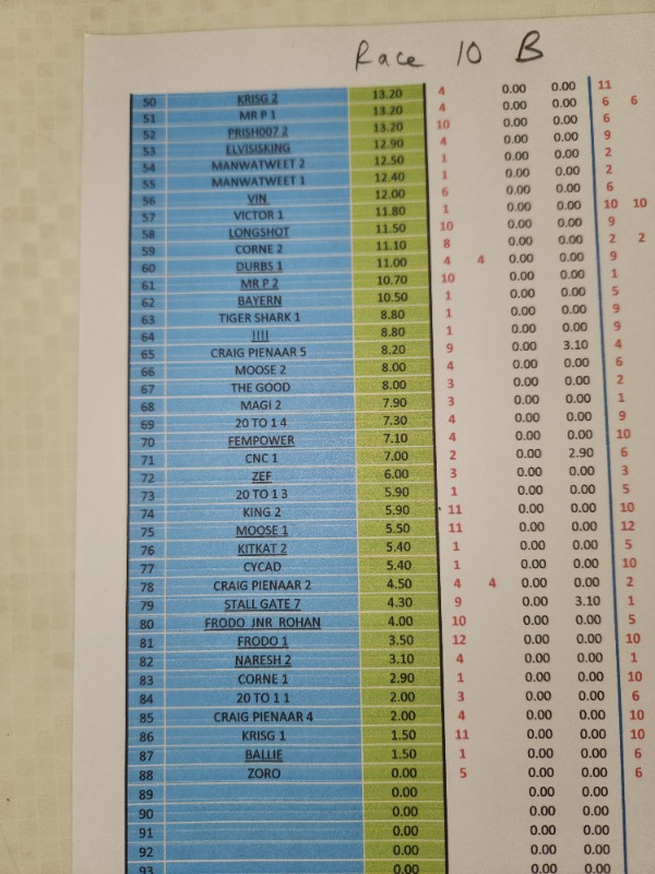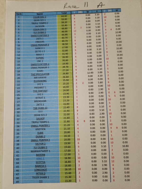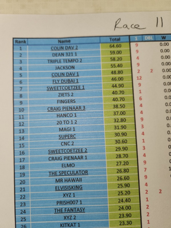 so basically won NIL on the JULY RACE...... but picked up 2 x 1st place in the draw,,,,,,, not too shabby - made a profit overall, so I;m happy