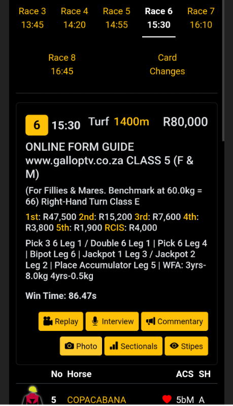 6 months 4 weeks ago - 6 months 4 weeks agoWhere (on the Gallop website) can we find the photos ? Fixtures/Results[attachment=17638]Screenshot_20250920_141820_Vivaldi.png[/attachment] [attachment=17638 wrote: Screenshot_20250920_141820_Vivaldi.png[/attachment] Pirhobeta post=904026 userid=1704"]Gallop website, but sometimes comes through late. Some operators are not prompt with releasing the photos...Its never crossed my mind but is there a way the public can get access to the photo? I watched the replay it doesn't look like Banyan ran 3rd 🤨
