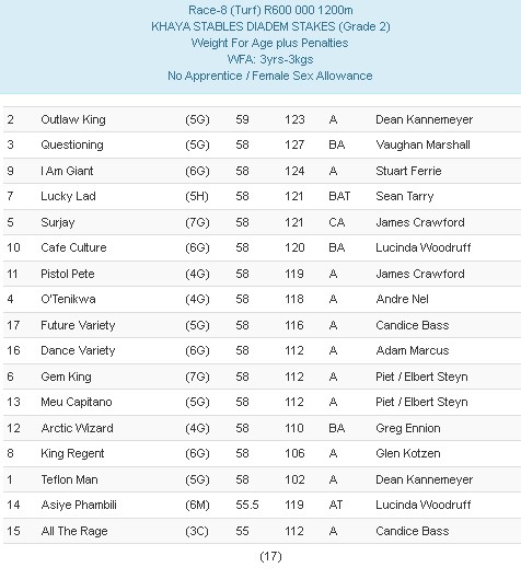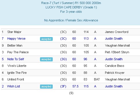 Re: Lucky Fish Cape Derby 28 Feb 2028. Nominations