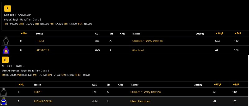 The connections of Trust may well have an eye on the R10 million Hollywoodbets Gr1 Durban July at this stage, and the related risks of running their now 110-rated 3yo to finish on top of, or even beating the likes of established older hard-knockers like See It Again (130) and others, is something to consider.