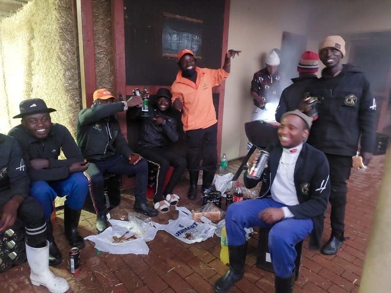 The grooms really enjoyed the braai and beers even with it raining in winter