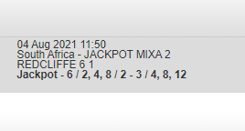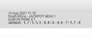 Jackpot - 1, 3, 5 / 1 - 3, 12 / 7 - 9, 12 / 5, 8