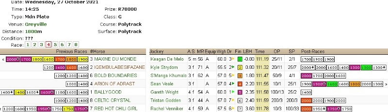 2 months 2 weeks ago - 2 months 2 weeks ago"]Greyville Race 4 27 October 2021